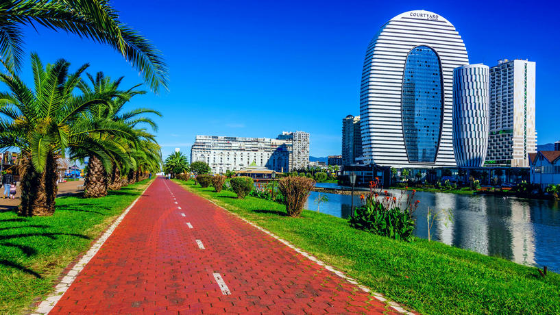 Курорт Кобулети – второй по величине город Аджарии после Батуми, крупный молодежный пляжный курорт с побережьем в 10 километров. Находится в 35 км от аэропорта Батуми, 70 км от аэропорта Кутаиси. Кобулети является альтернативным курортом Батуми, здесь немного дешевле и поменьше туристов, а вот гостевых домов, ресторанов и разнообразных развлечений – почти столько же. Кобулети называют бюджетным Батуми. Кобулети имеет уникальную планировку. Здесь всего три главных улицы, которые идут параллельно друг другу и морю. Ближе всего к пляжам находится Набережная улица, за ней стоит центральный проспект Кобулети – улица Давида Строителя, а объездной считается улица Руставели. Гулять по Набережной можно долго, до 4 часов в одну сторону. Кроме огромного пляжа, есть в Кабулети такие интересные места, как Природный заповедник Кобулети (в черте города), Парк «Цицинатела» (большой парк аттракционов), Национальный парк «Мтирала» (огромный заповедник на 6000 гектар с субтропической горной системой, целебными родниками и водопадами и т. д.).
