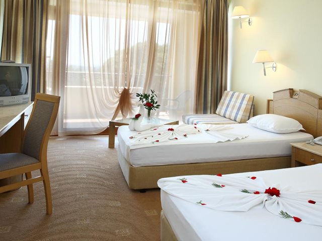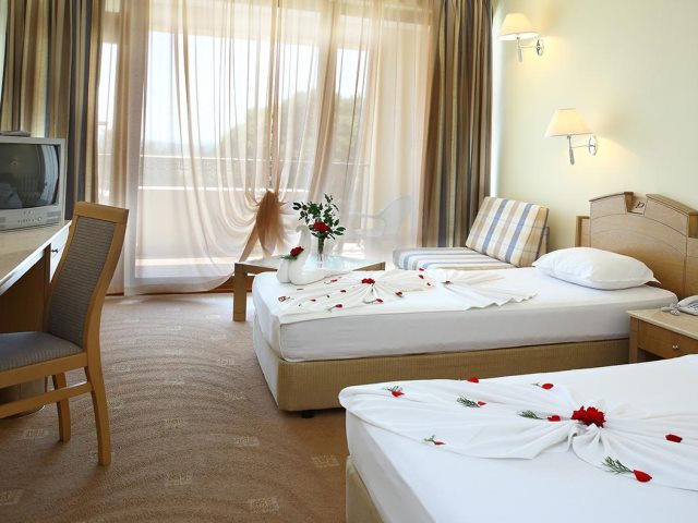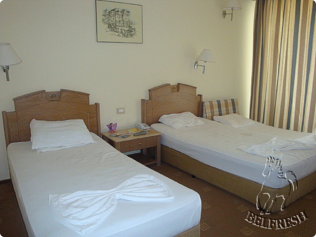 Double Rooms - 2 односпальные кровати плюс 1 диван-кровать; ковровое покрытие или плитка; индивидуально-контролируемый кондиционер в период с 15.06 по 15.09; спутниковое телевидение; ванная комната с ванной и феном; сейф (за доп. плату) ; мини-холодильник; балкон или терраса.