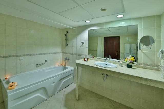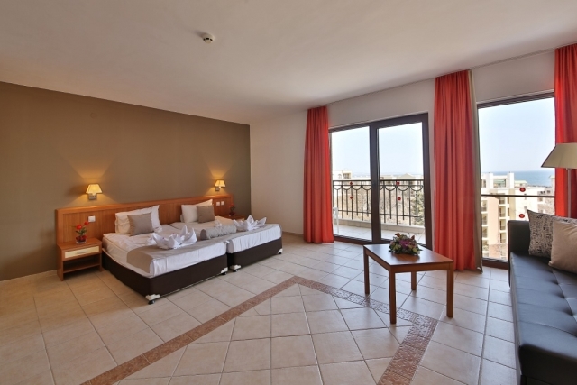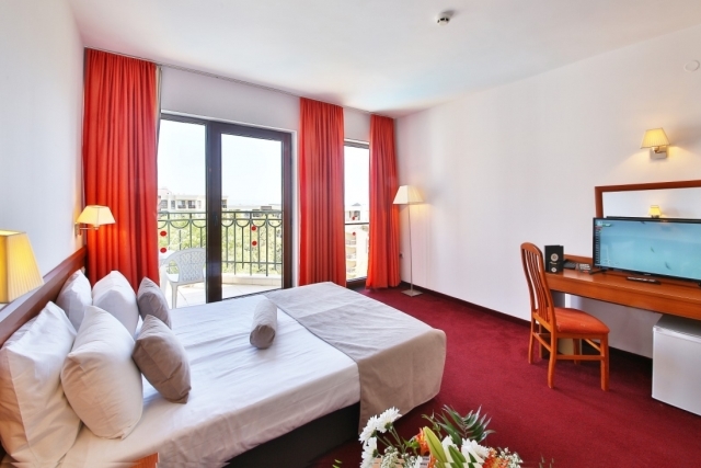 DOUBLE ROOM – STANDARD-состоит из: двух отдельных кроватей или двуспальной кровати, 32”LCD телевизора со спутниковым телевидением, кондиционера, сейфа, телефона, ванной комнаты с феном и косметическим набором, балкона с видом на море или парк.