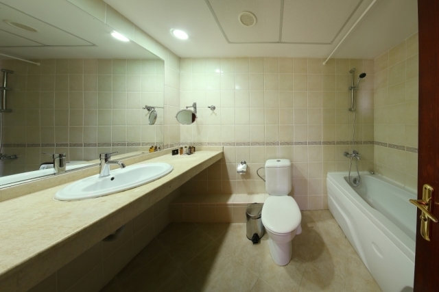 холодильник, 32-“ LCD телевизор, спутниковое телевидение, сейф, телефон, ванная комната с феном и косметическим набором, два туалета, балкон с видом на море или парк.