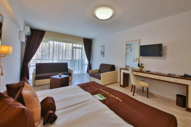 Расположен в самом сердце Золотых Песков среди природного зеленого парка, имеет отличное расположение в 350 метрах от пляжа и главной набережнойи предлагает отличные условия для семейного отдыха.