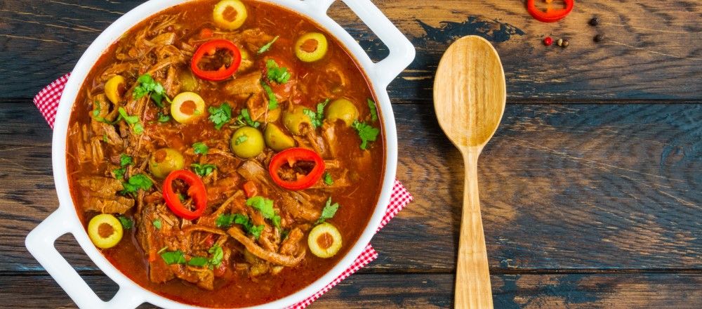 Кубинская кухня – простая, быстрая и сытная. Довольно острая. Сложилась на основе испанской, африканской, креольской, карибской кухонь. Туристам предлагают блюда на основе говядины, свинины и курицы, при этом большинство из них приправляются соусами – чесночным мохо и овощным софрито, сделанным из помидор и болгарского перца опять же с добавлением чеснока.