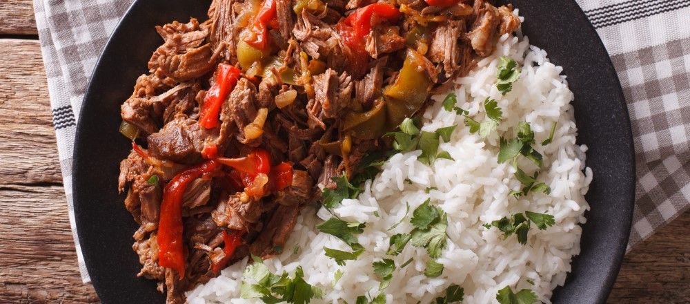 Ропа вьеха. Тушеная (скорее, томленая) говядина на белом рисе. Подают с жареными или прессованными бананами.